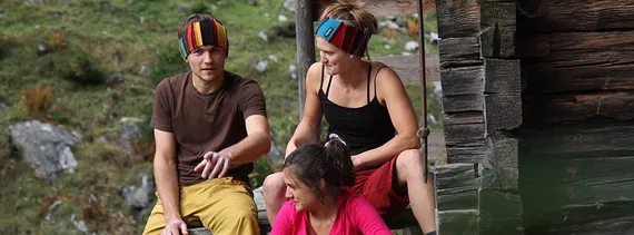 Produkte: Siebdruck-Shirts für Große und Kleine, Stirnbänder, Meditationskissen, Kletterhosen